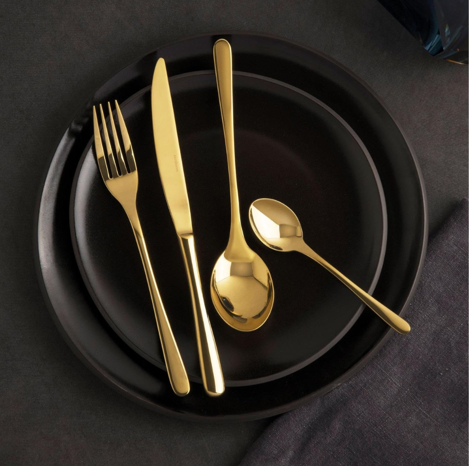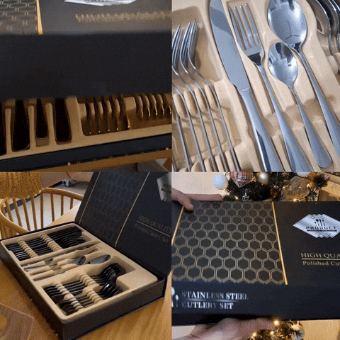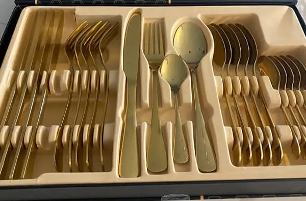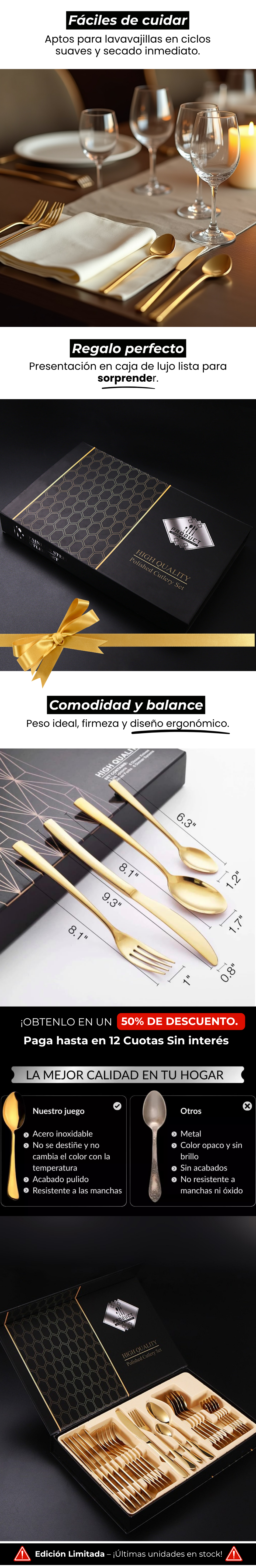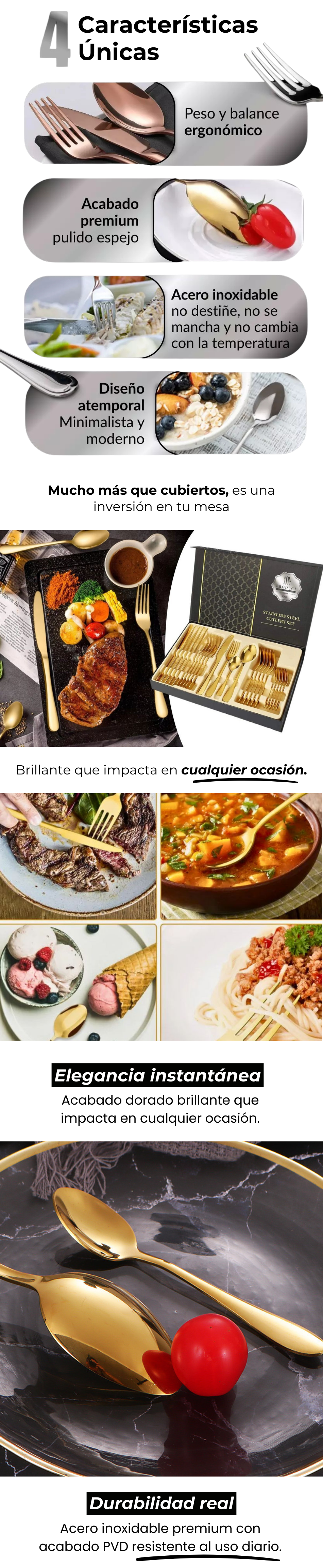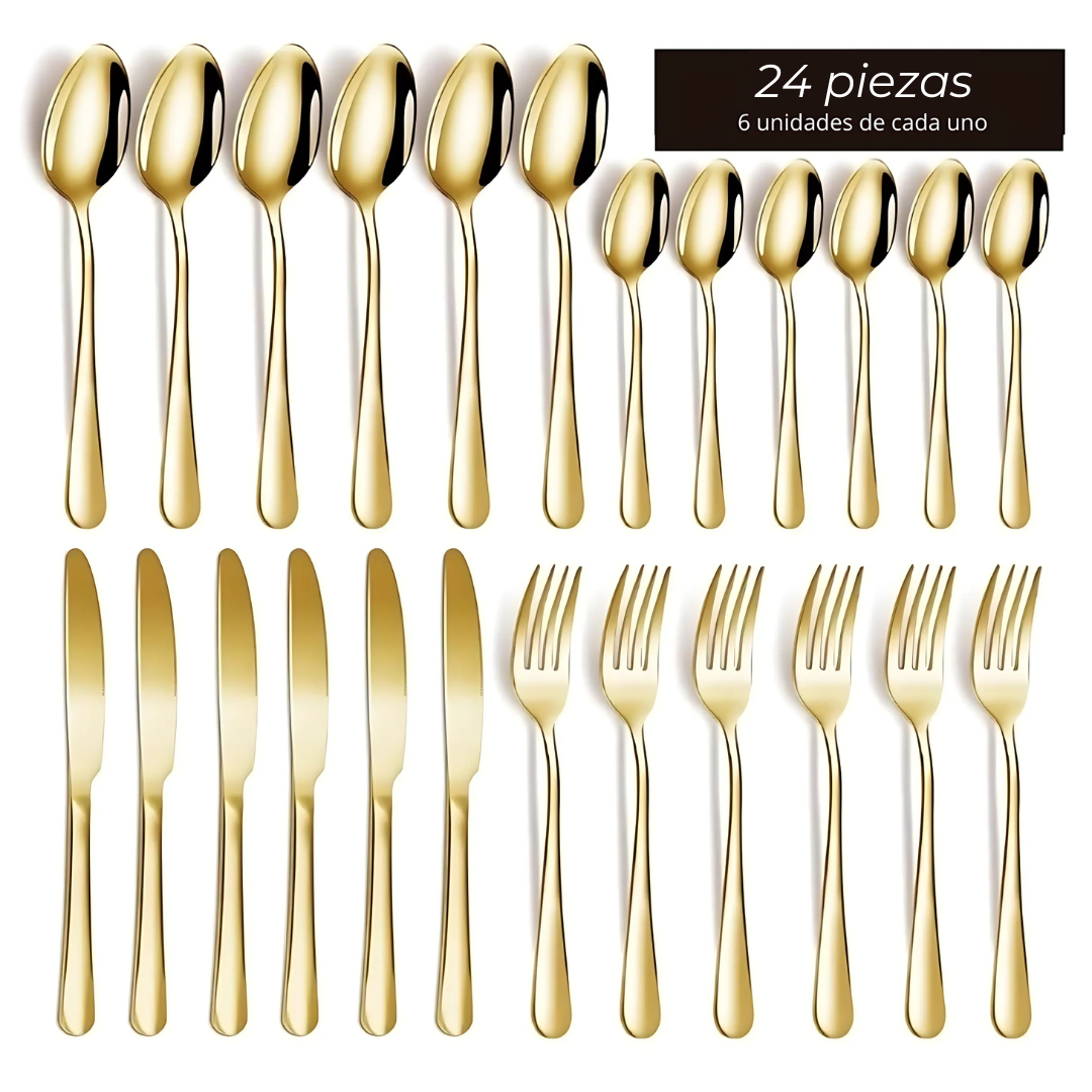 GoldenKitchen: Set de Cubiertos Dorados 24 Piezas Premium Acero Inoxidable+ Caja Regalo + Envío Gratis